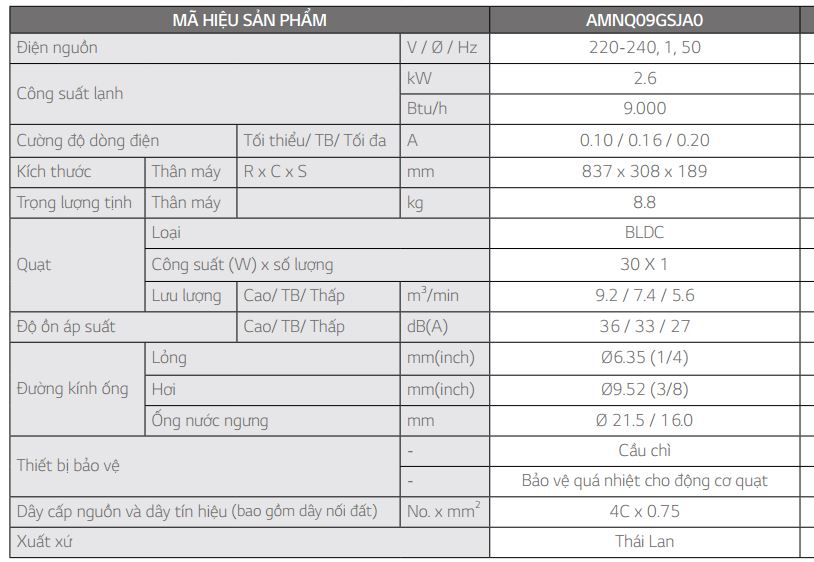 Giới thiệu Dàn Lạnh Nối Ống Gió Multi LG 1 Chiều Inverter 9.000BTU AMNQ09GL1A0